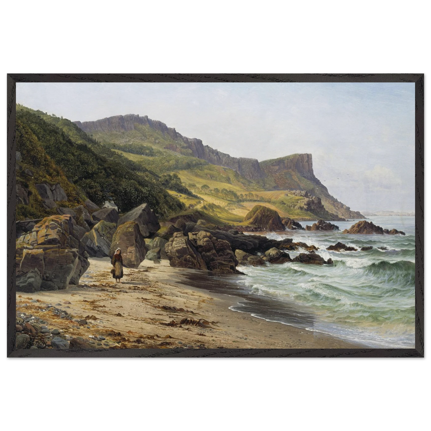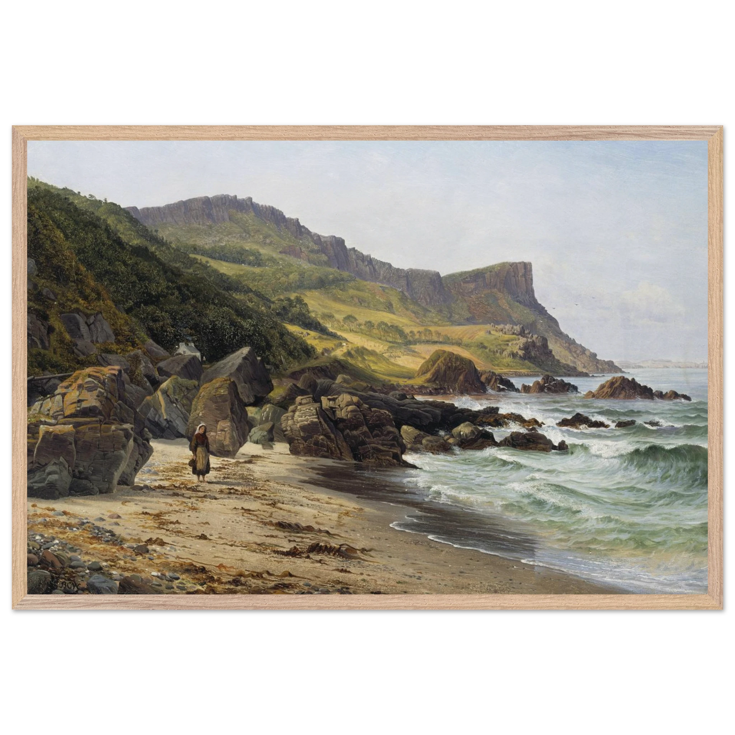 Immerse yourself in the timeless beauty of Ireland’s rugged coastline with this luxurious reproduction print of Murlough Bay and Fair Head, Coast of Antrim, painted by the esteemed Irish landscape artist Bartholomew Colles Watkins.