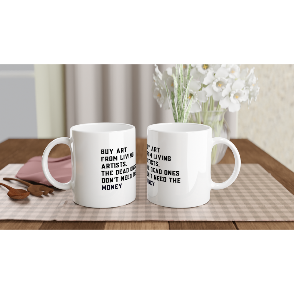 The mug is glossy white and the prints come out beautifully and vividly on it. The print retains its quality and luster when used in both microwaves and the dishwasher.