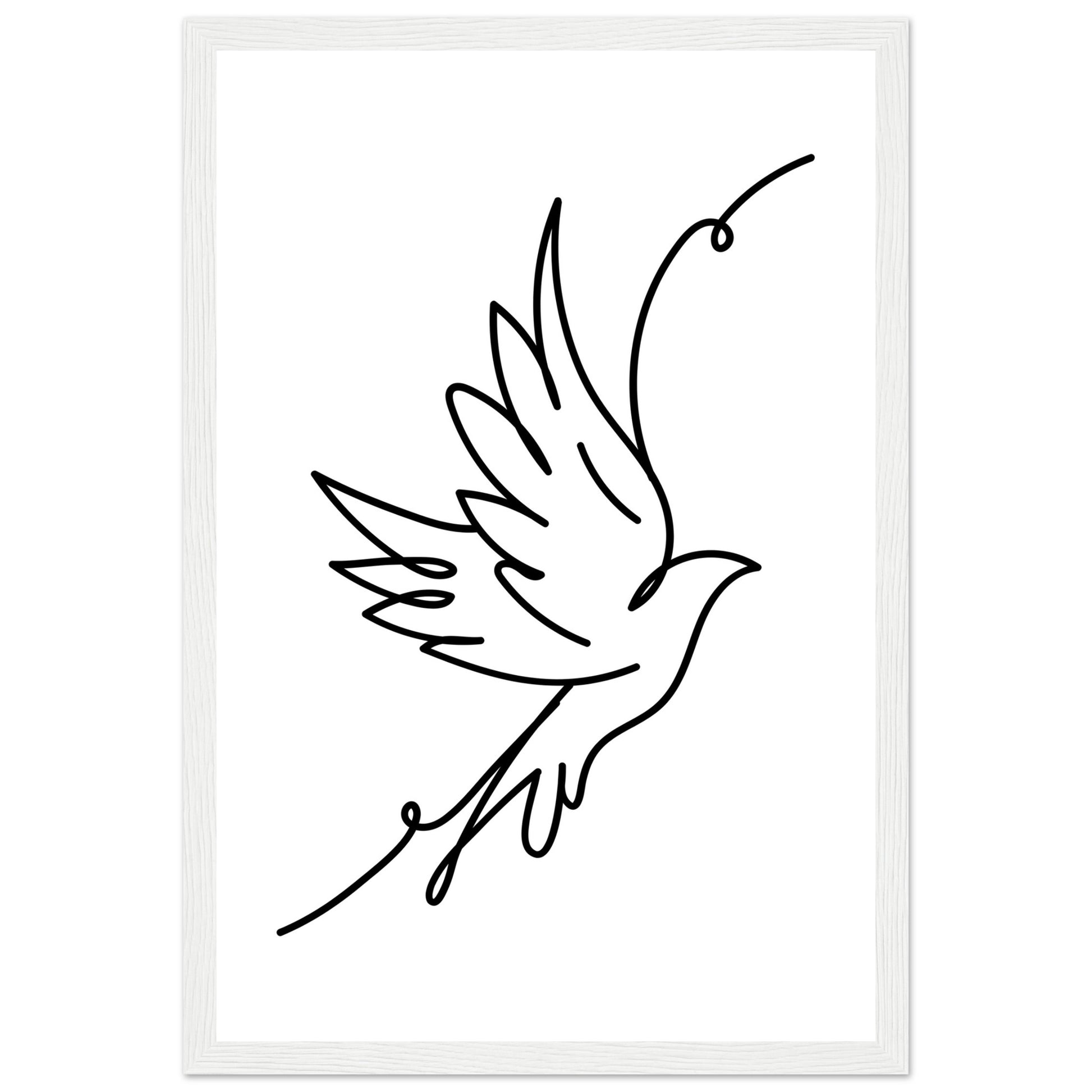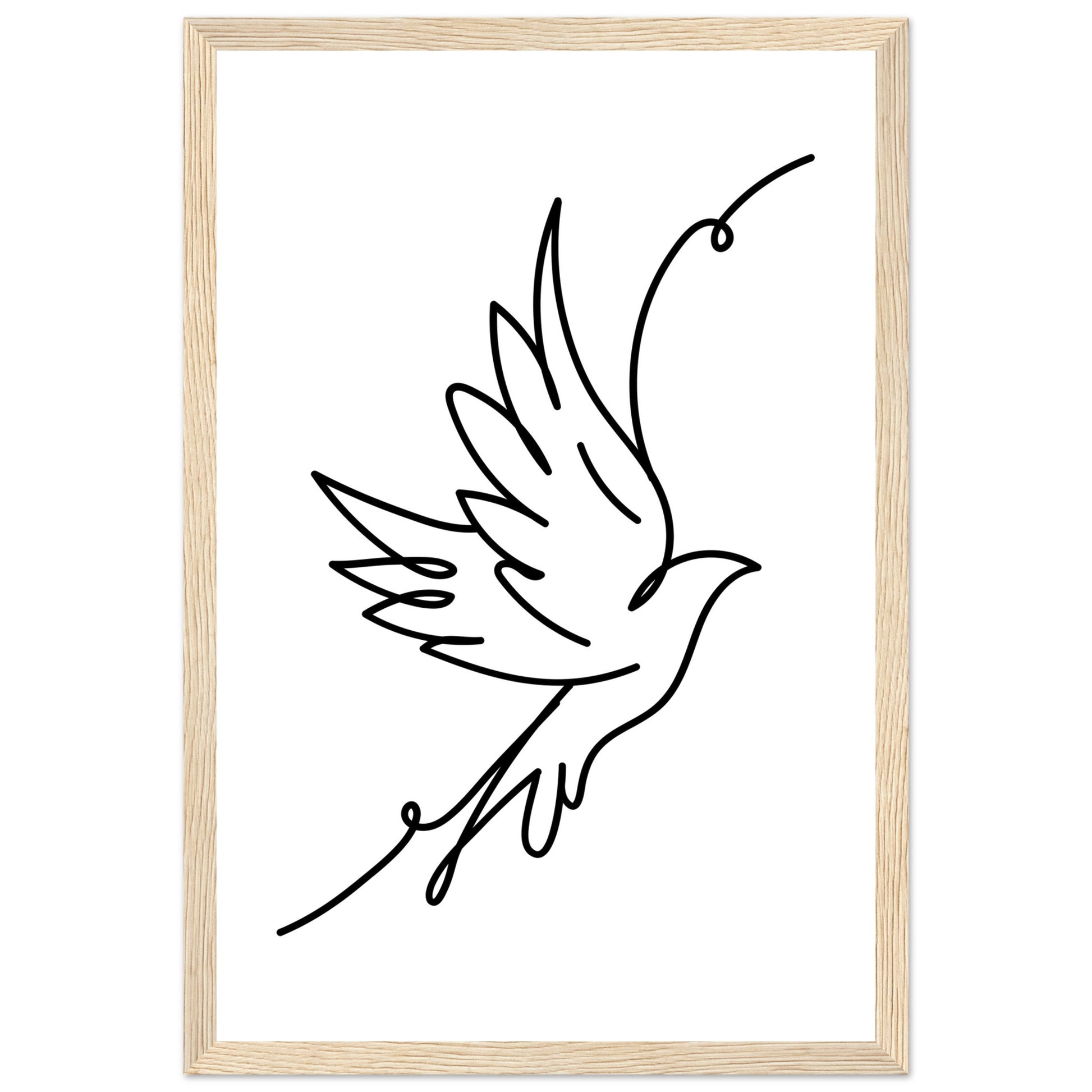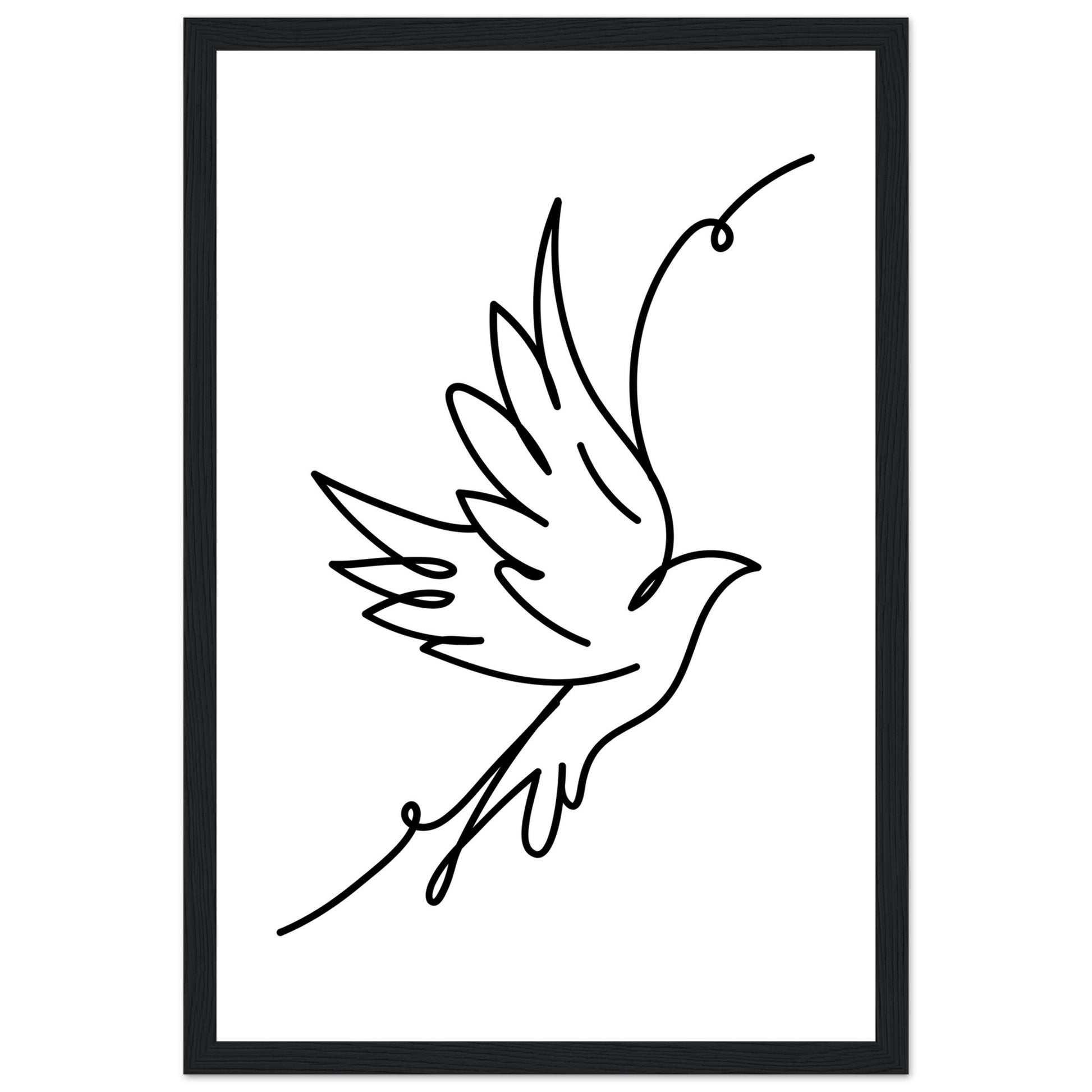 Elevate your space with our Flying Bird Line Drawing Framed Art Print. This minimalist yet captivating piece of art beautifully captures the essence of flight and freedom.