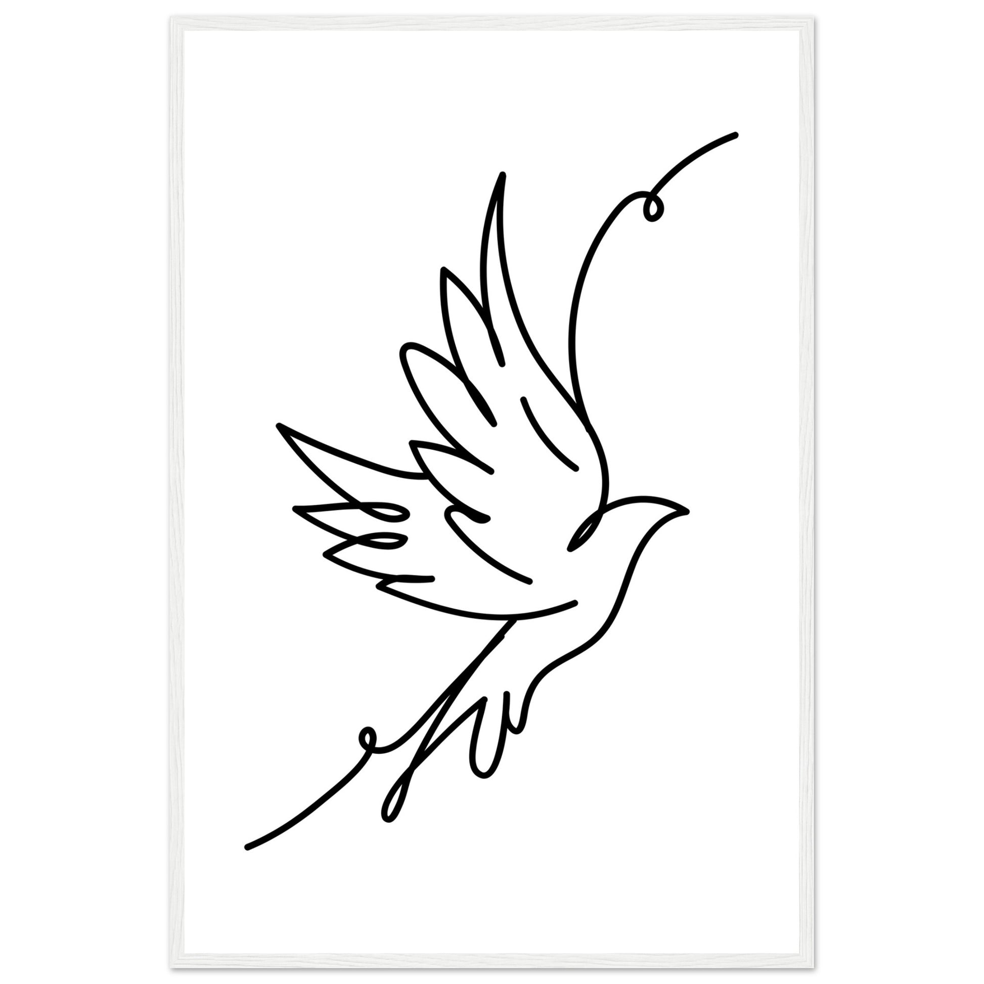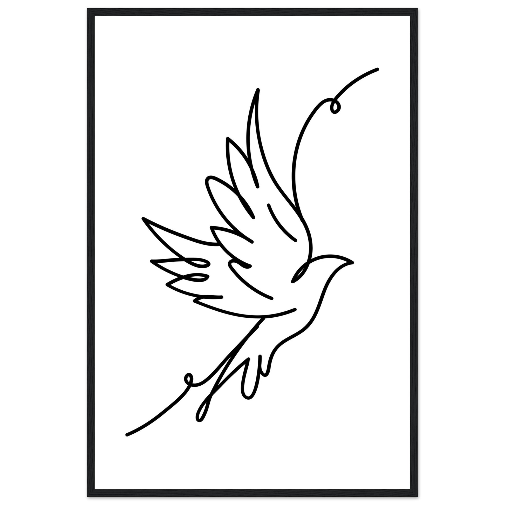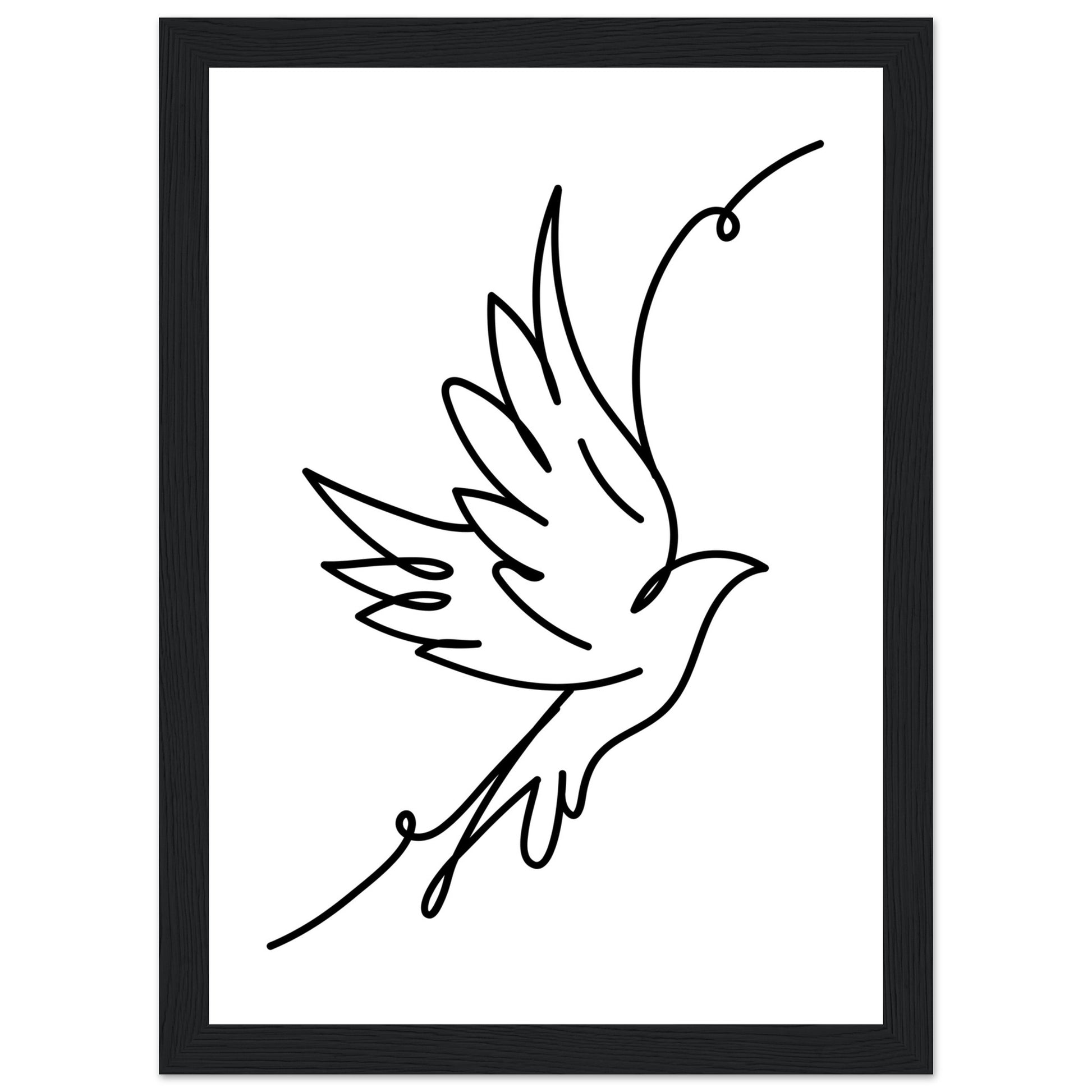 Elevate your space with our Flying Bird Line Drawing Framed Art Print. This minimalist yet captivating piece of art beautifully captures the essence of flight and freedom.