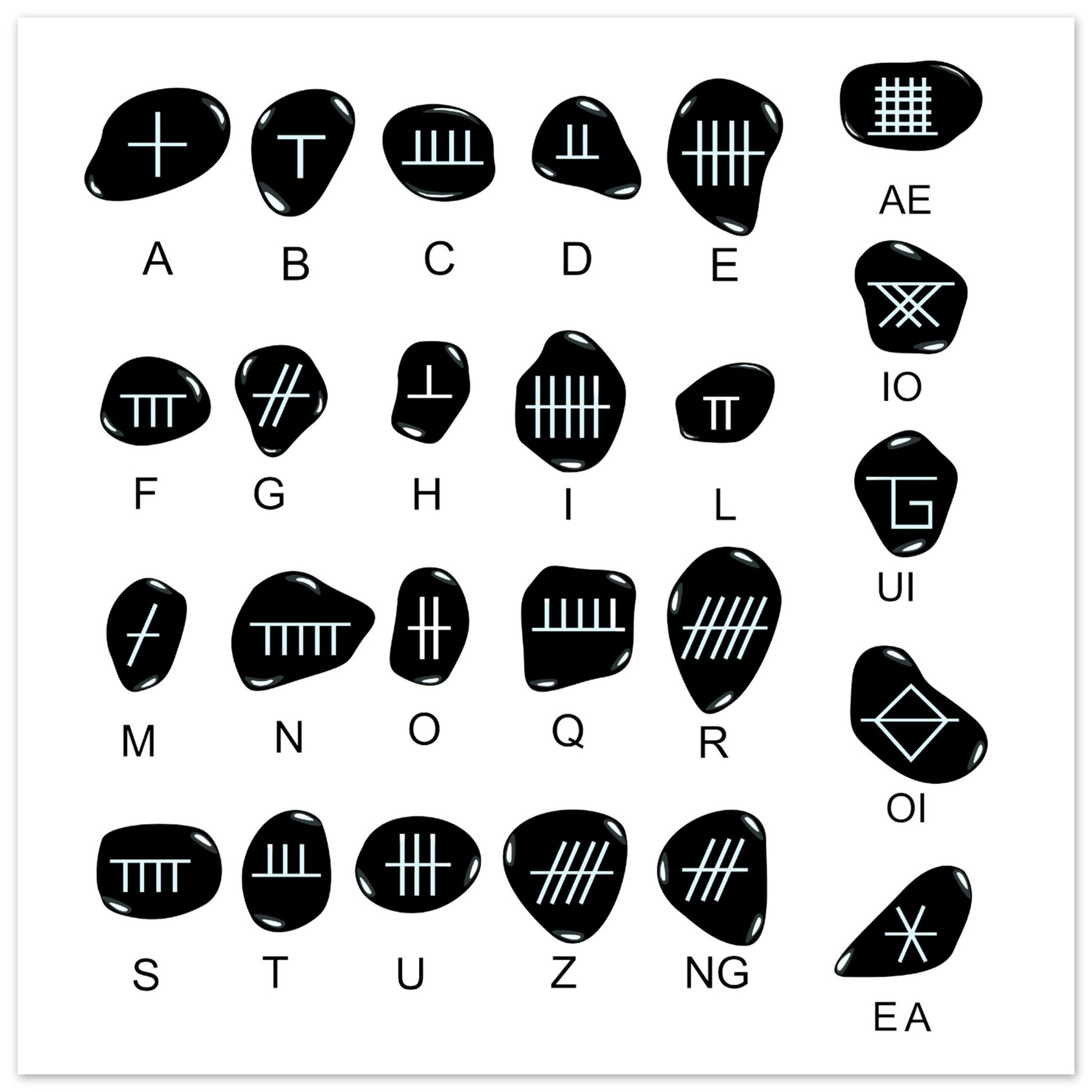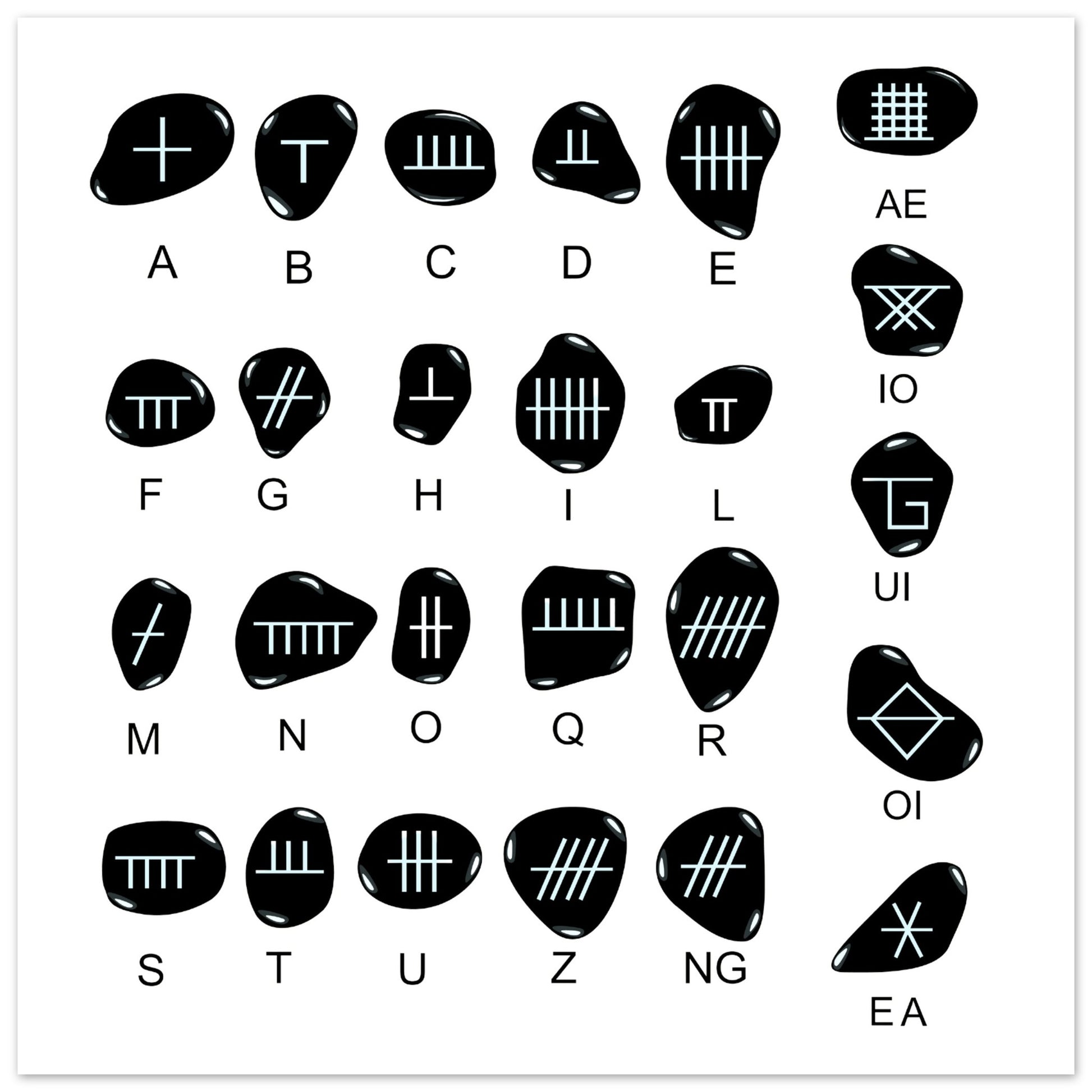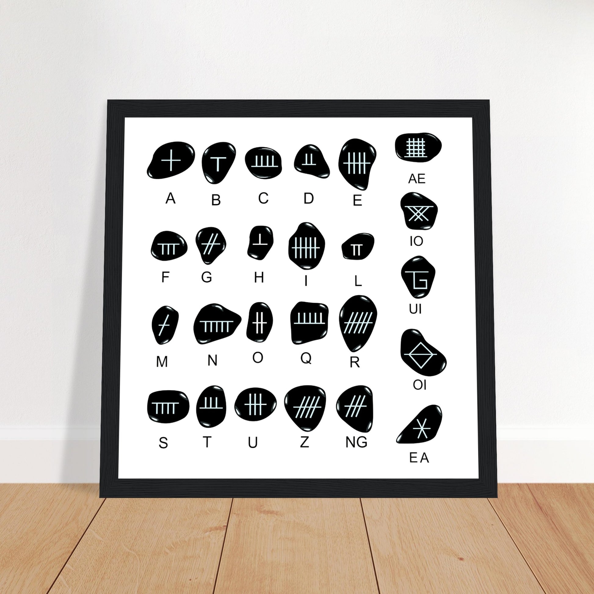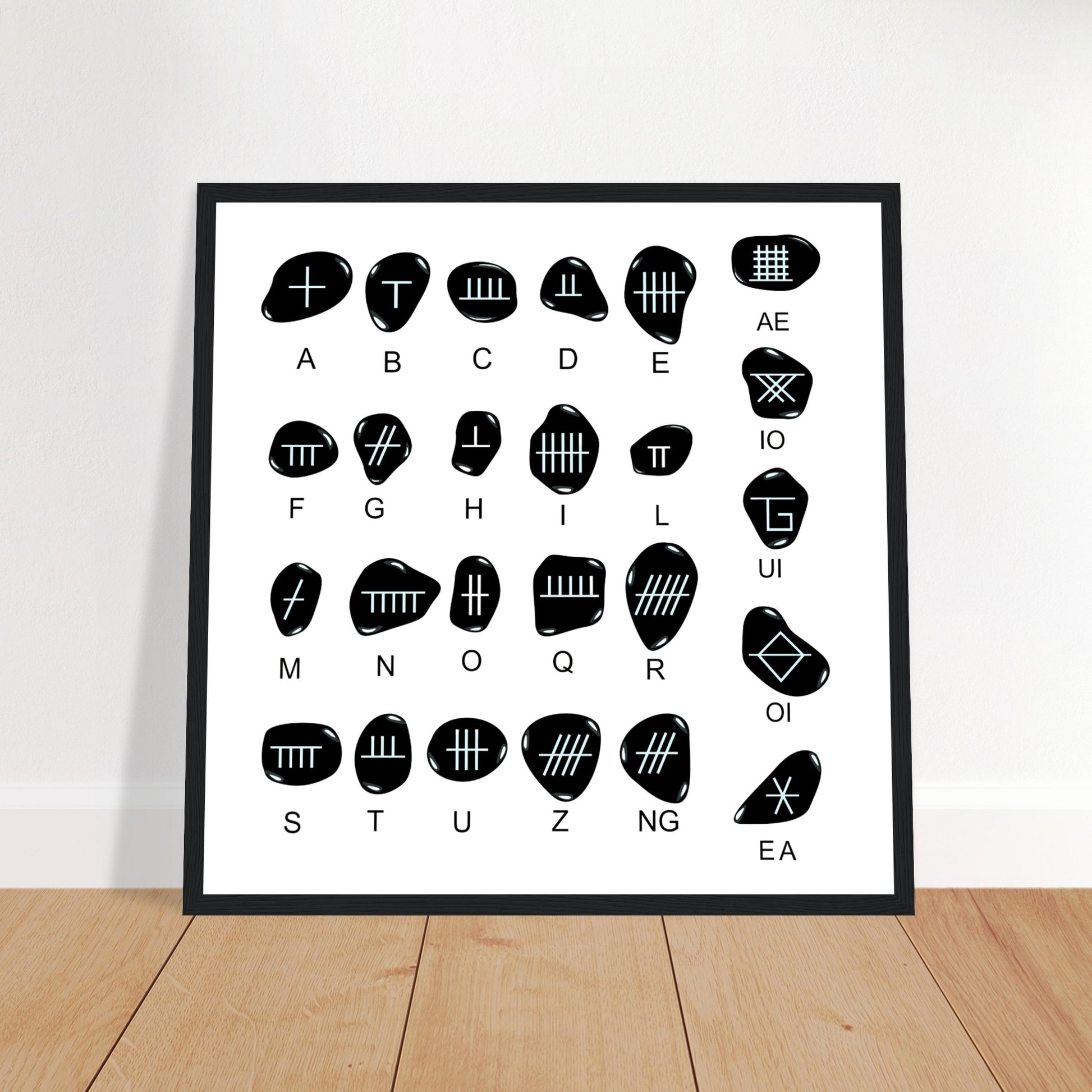 Introducing our captivating Ogham Framed Art Print – a fusion of ancient mystique and modern elegance. Ogham, the early medieval alphabet of Ireland, comes to life in this art piece, beautifully rendered in intricate detail and framed to perfection.