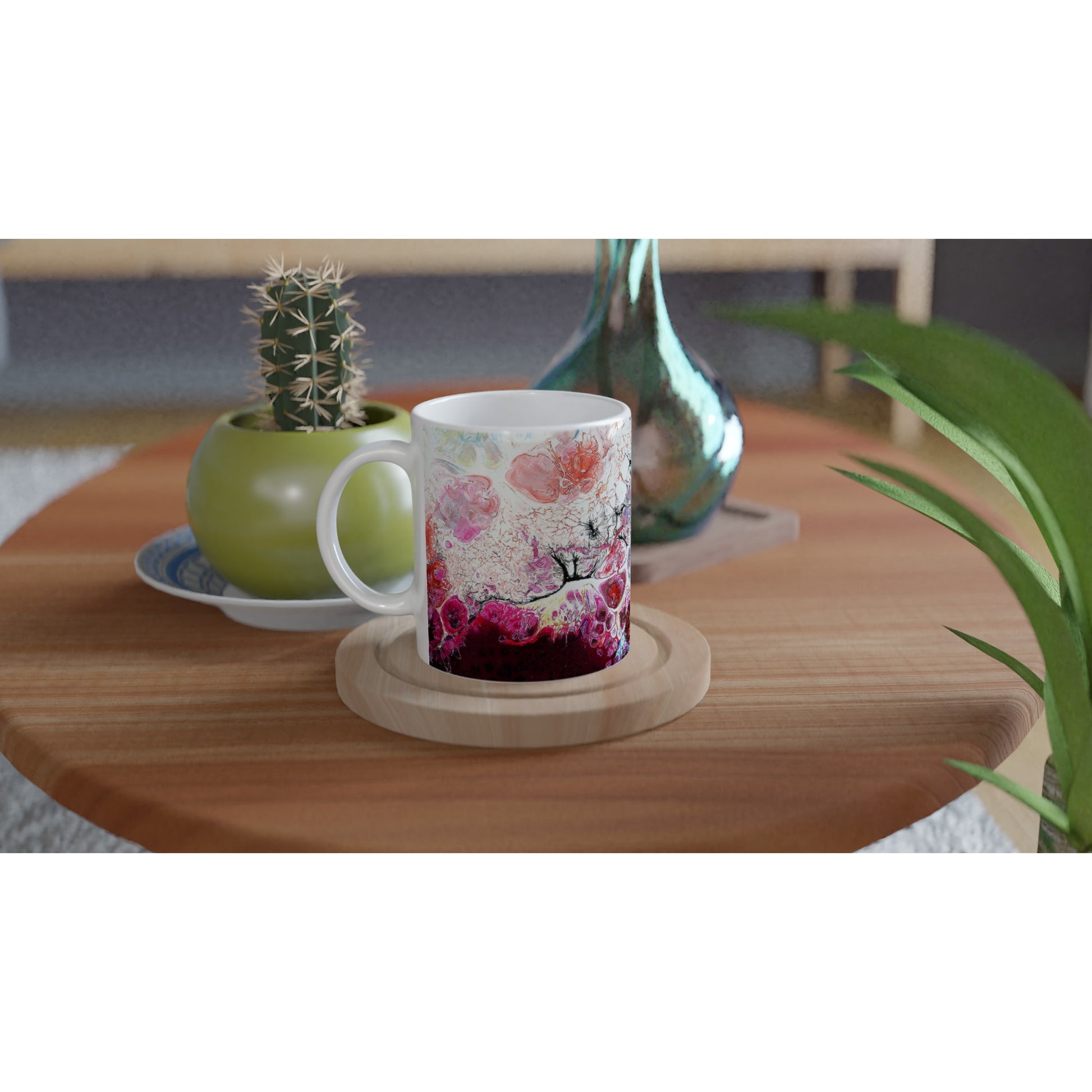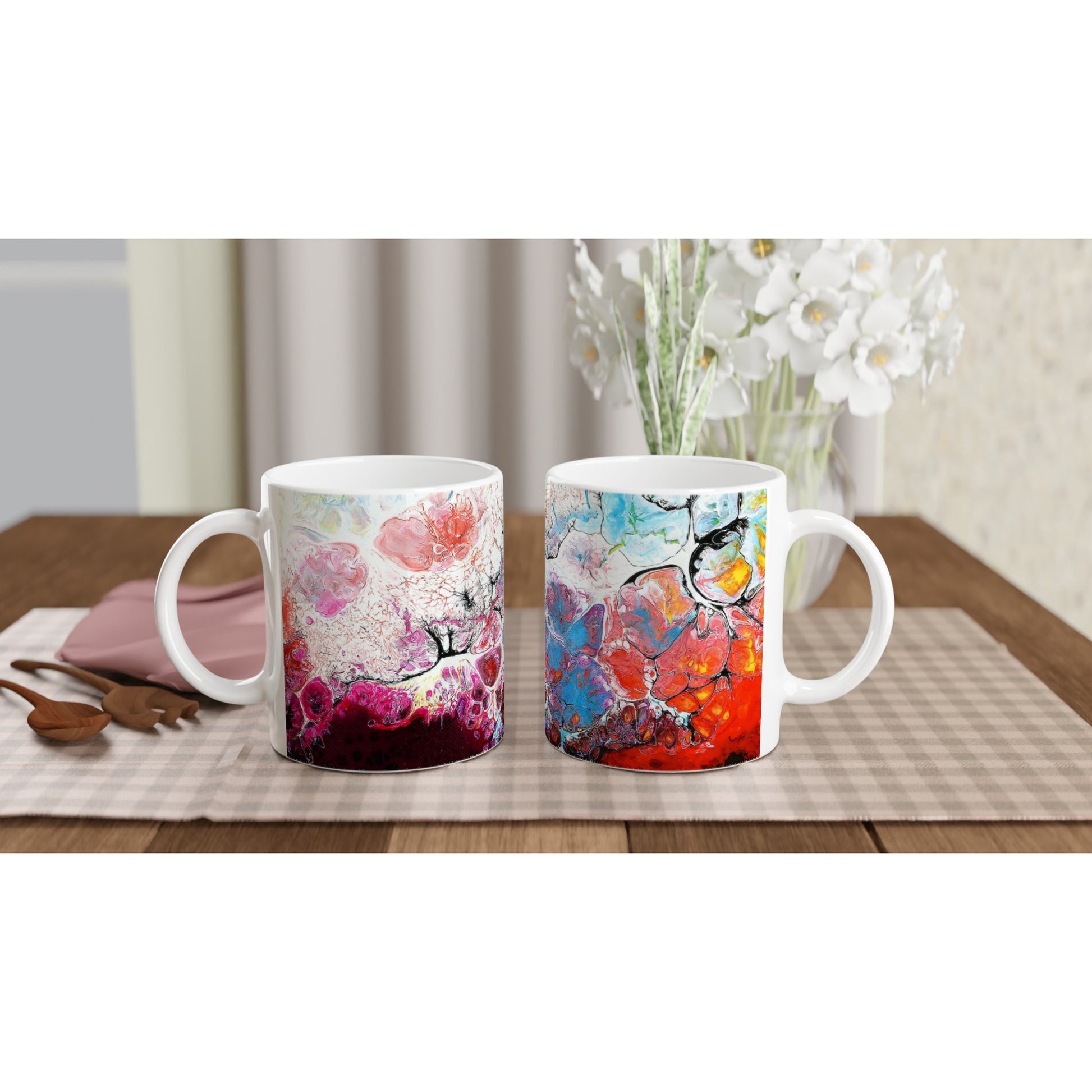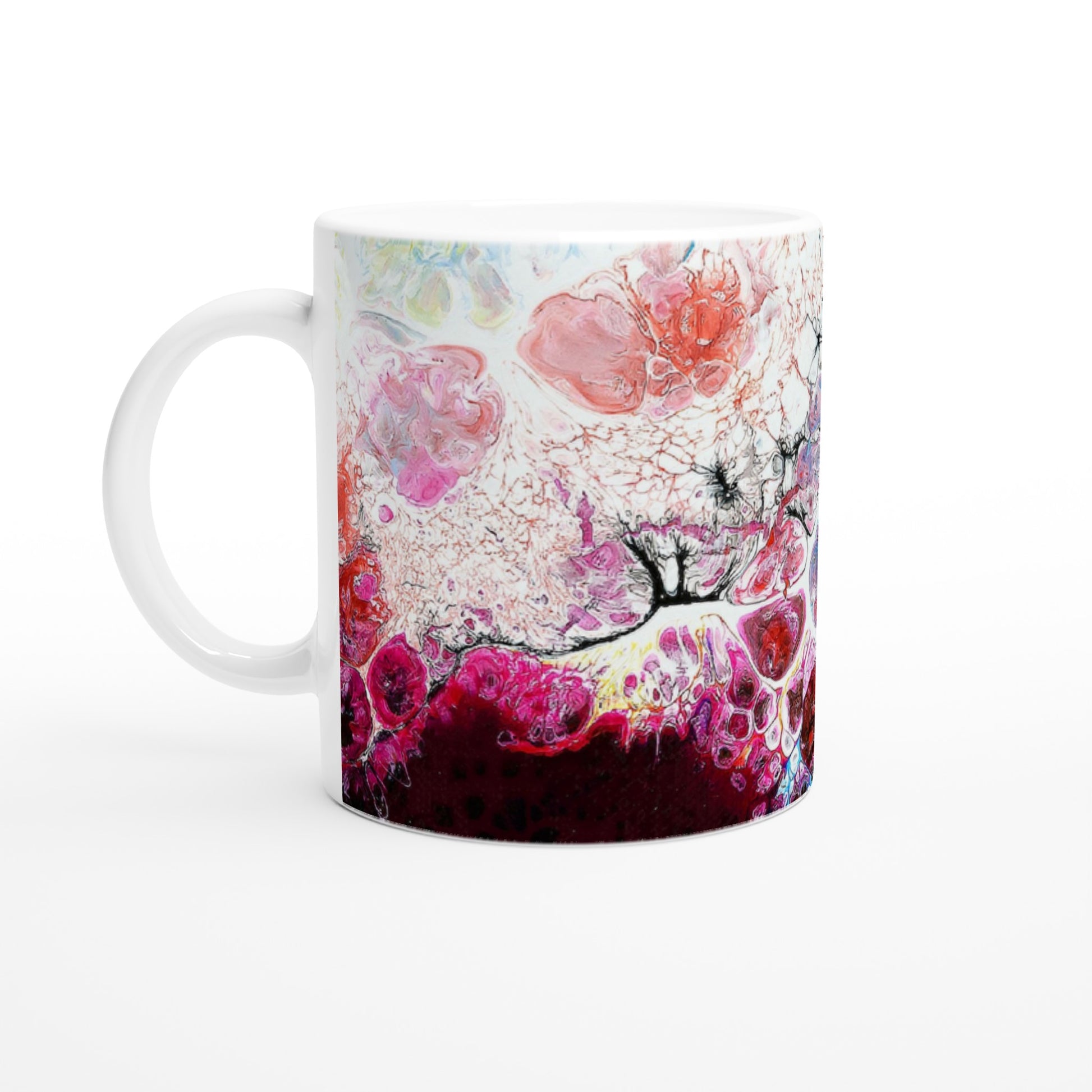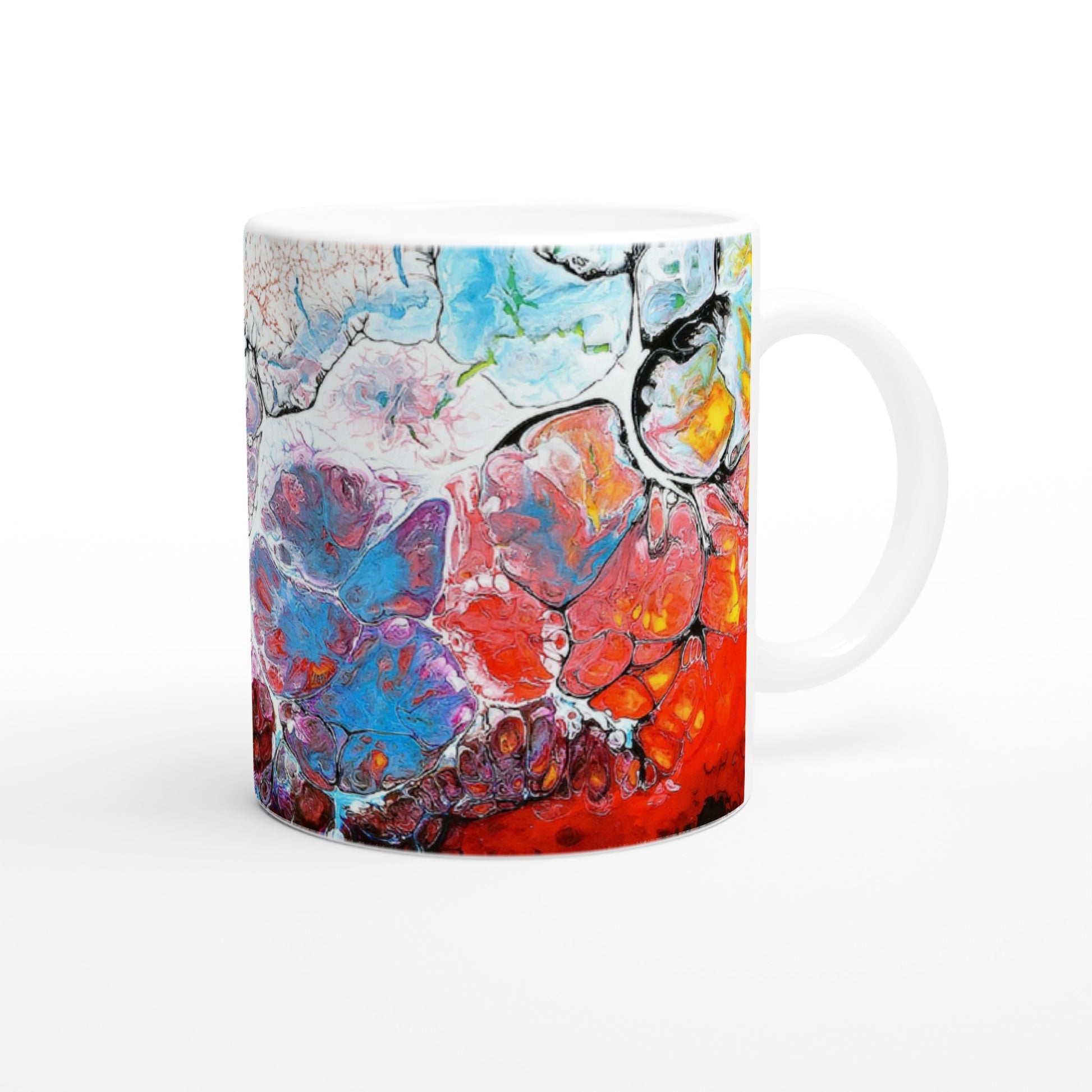 This beautiful ceramic mug is perfect for any event of the day. Your morning coffee, a hot chocolate, or any other hot beverage you enjoy. The mug is glossy white and the prints come out beautifully and vividly on it. The print retains its quality and luster when used in both microwaves and the dishwasher.
